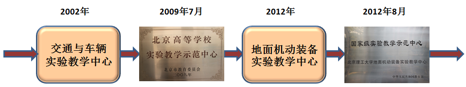 2012年,机械与车辆学院以交通与车辆北京市实验教学示范中心为主体,以机械工程及动力机械与工程等优势特色学科为龙头,融合地面武器机动工程、车辆工程、机械工程及其自动化、热能与动力工程、工业工程、交通工程以及机械电子工程七个专业的优质教学实验资源、打通科研壁垒,加强教学科研协同、联合相关企业,成立了地面机动装备实验教学中心,并于2012年8月经教育部批准为国家级实验教学示范中心。